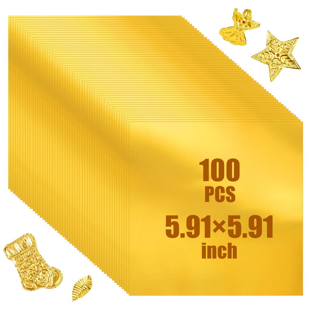 100 Pcs Gold Flashing Square Tin Foil Heavy Duty Aluminum Foil Sheet DIY Engraving Tinfoil for Painting Engraving and Embossing