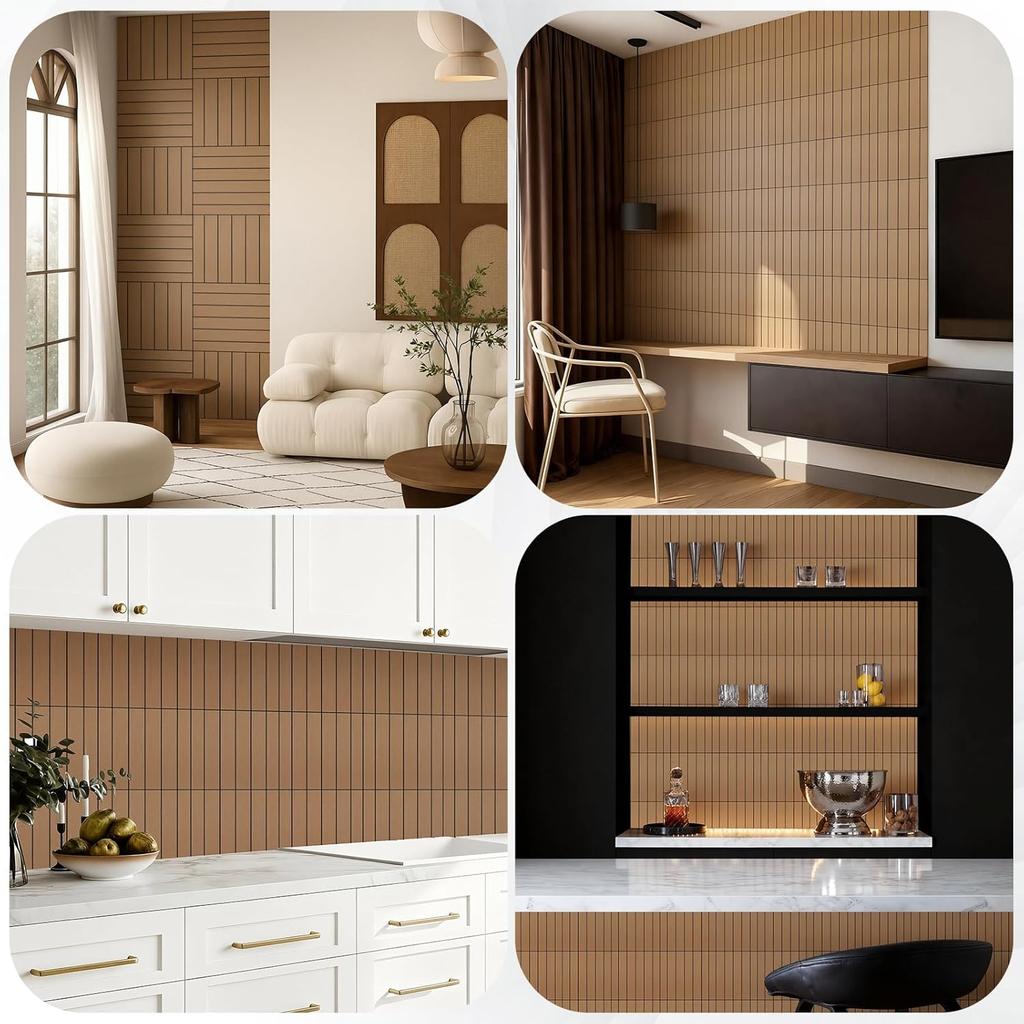 10Pcs Peel and Stick Wood Slat Wall Panels Decorative Wall Panels 12"x12" Self Adhesive Slat Acoustic Textured Panel Soundproof