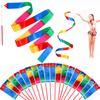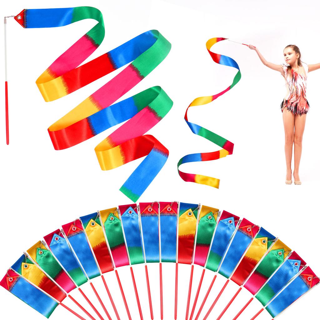 18pcs Ribbons for Gymnastics, 78.7 Inch Sparkling Dance Ribbon Rainbow Ribbon Dancer Wand Streamer on a Stick for Girls