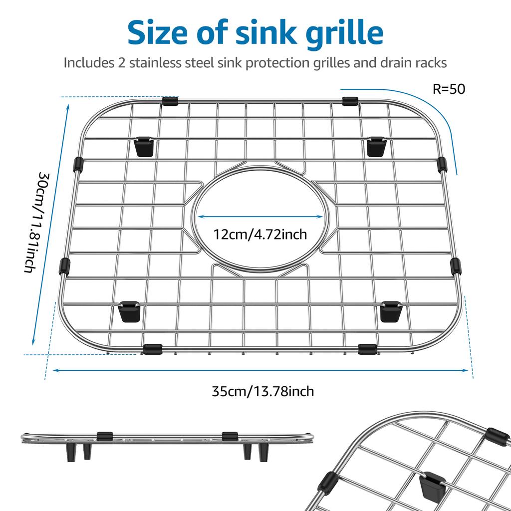2Pcs Sink Grid Stainless Steel Sink Protectors Drainage Racks Kitchen Sink Protector with Rubber Padded Feet for Kitchen Gadgets
