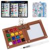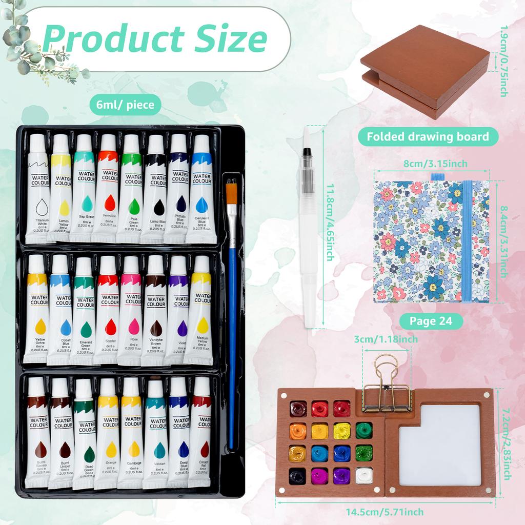 1Set Mini Watercolor Paint Set Portable Pocket Watercolor Kit with 15Grid Palette 24 Color Paint Sketchbook and Brush for Travel