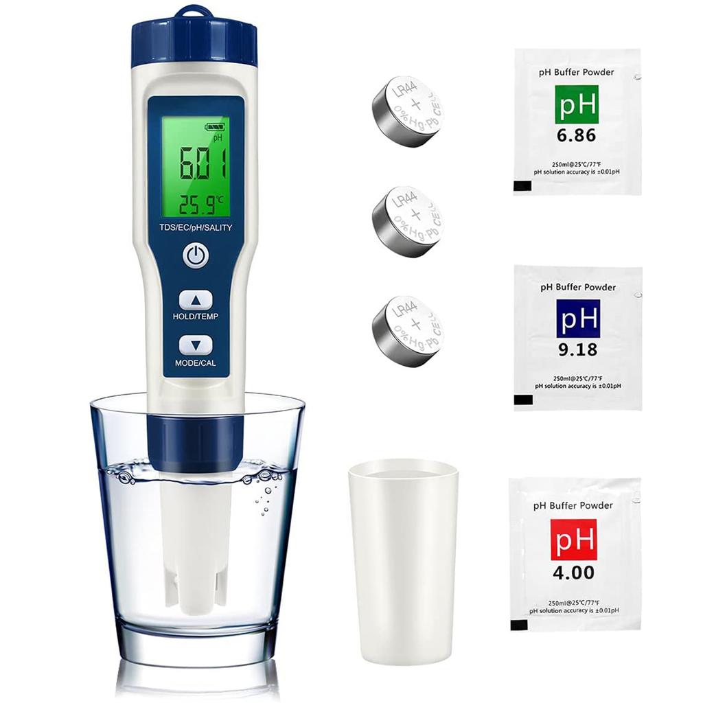 5 in 1 Water Tester Multi-functional Water Quality Tester LCD Digital pH Meter PH EC TDS Salinity Temp Test Tool for Hydroponics