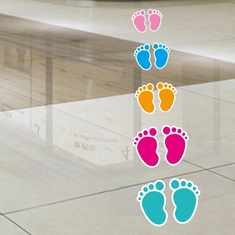 10 Pairs Cute Footprints Stickers Small Feet Kindergarten School Stairs Cartoon Waterproof Flooring Posters Be Careful with Step
