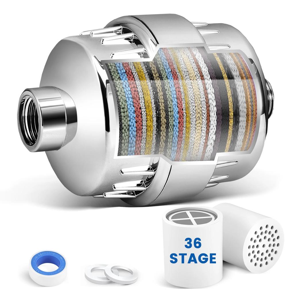 36 Stage Shower Faucet Head Cleaning Purifier Filter Metals Filtered for Hard Water Soften 1 Replaceable Extra Filter Cartridge