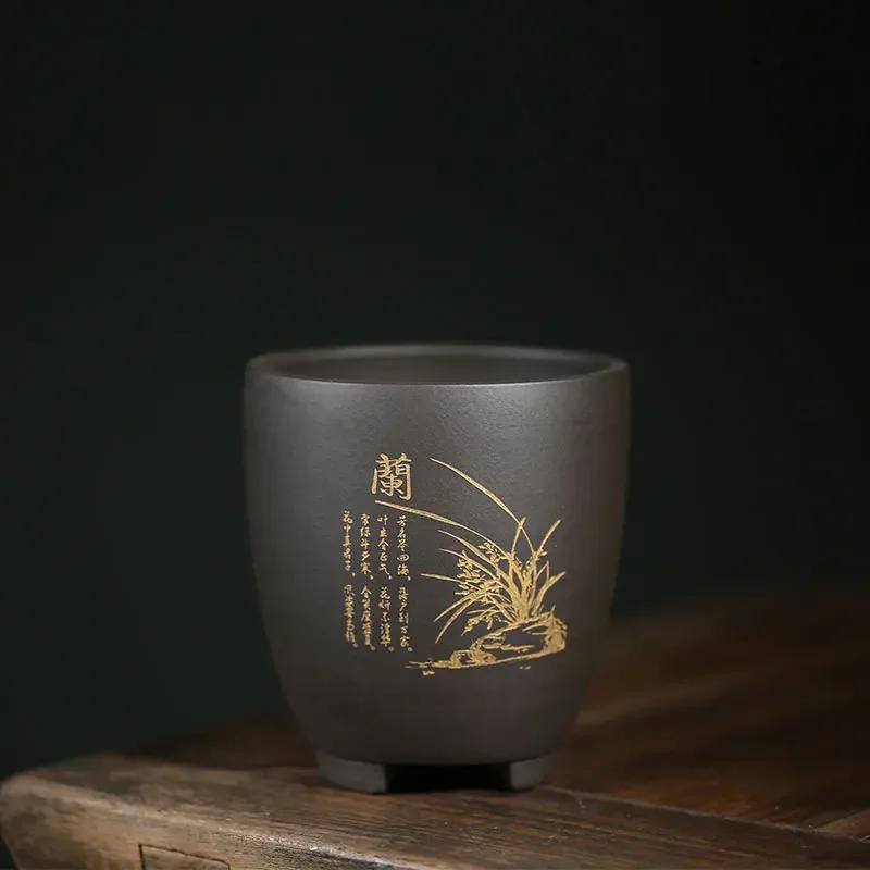 Purple Sand Flowerpot Succulents Yulu Stone Flower Balcony Potted Plant Pot Creative Gardening Ceramic Hand-painted Small Orchid
