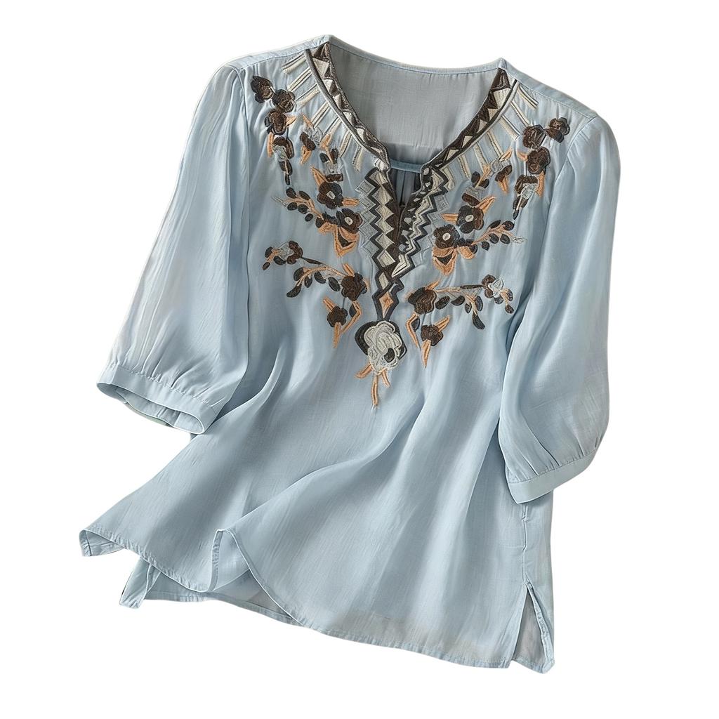 Women's Retro Embroidered Cotton Linen Stylish Casual Shirt Top