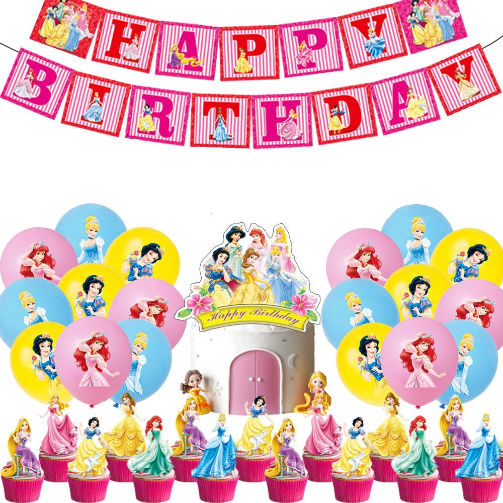 Princess Balloons Including Balloons, Happy Birthday Banner, Cupcake Toppers