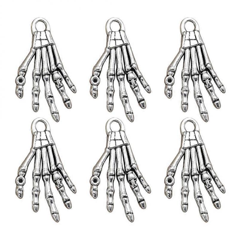 Alloy Pendant Charm Necklace Charms For Jewelry Making Skeleton Hand Shape Antique Silver 10Pcs