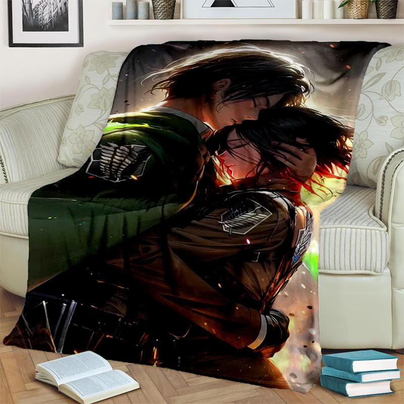 3D Cartoon Attack on Titan Eren Mikasa Anime Blanket,Soft Throw Blanket for Home Bedroom Bed Sofa Travel Picnic Cover Kids Gift