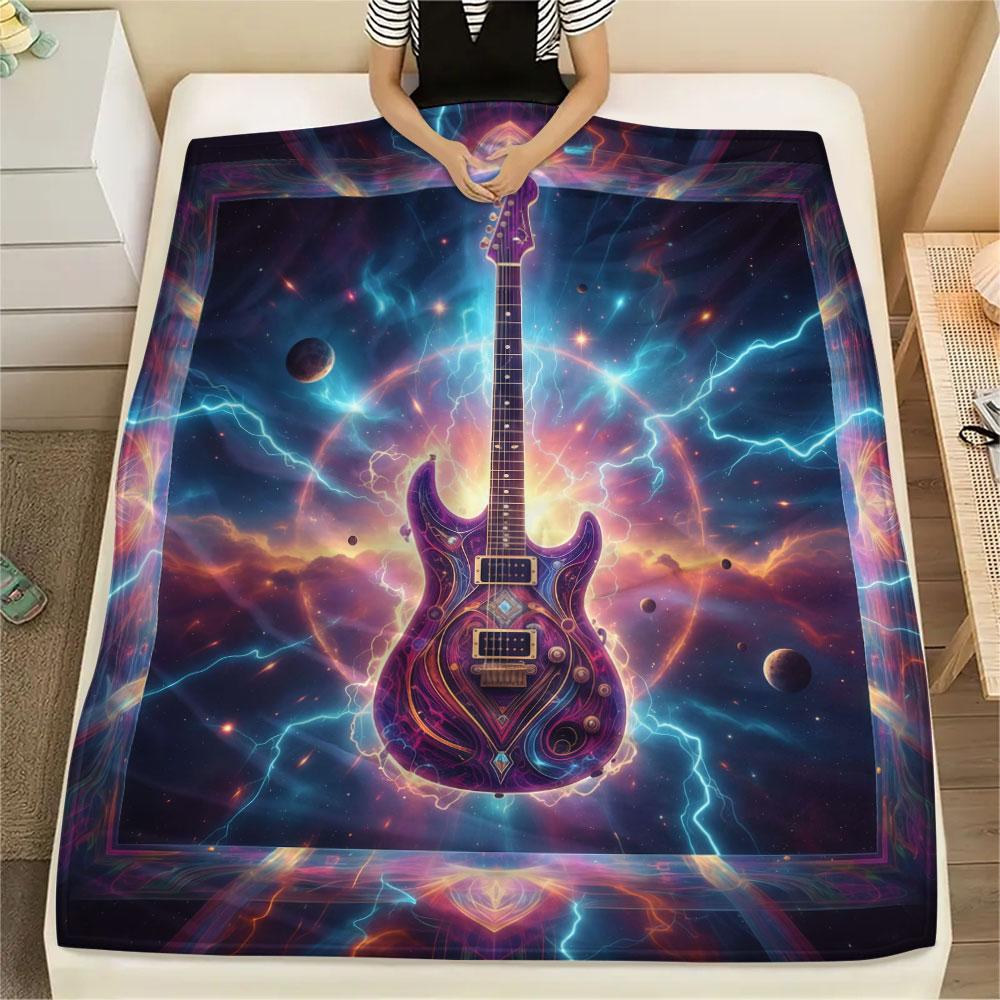 1Pc Vintageguitar Print Flannel Blanket, High quality Comfortable for All Seasons, Home Decor, Warmth and Comfort, Perfect for Christmas Gifts