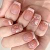 24PCS Short Square False Nails Glitter Golden Butterfly Flower French Fake Nails for Women with Simple Designs Wearable Press On