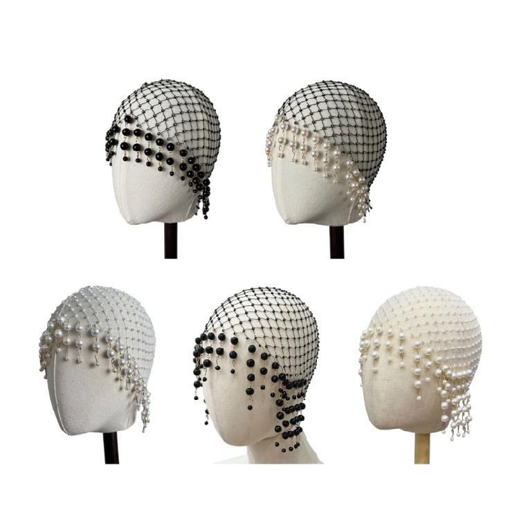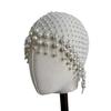 Sparkling Pearls Adorned Tassels Hair Hat Sophisticated Faux Pearls Tassels Hairpiece Hat for Evening Event and Galas