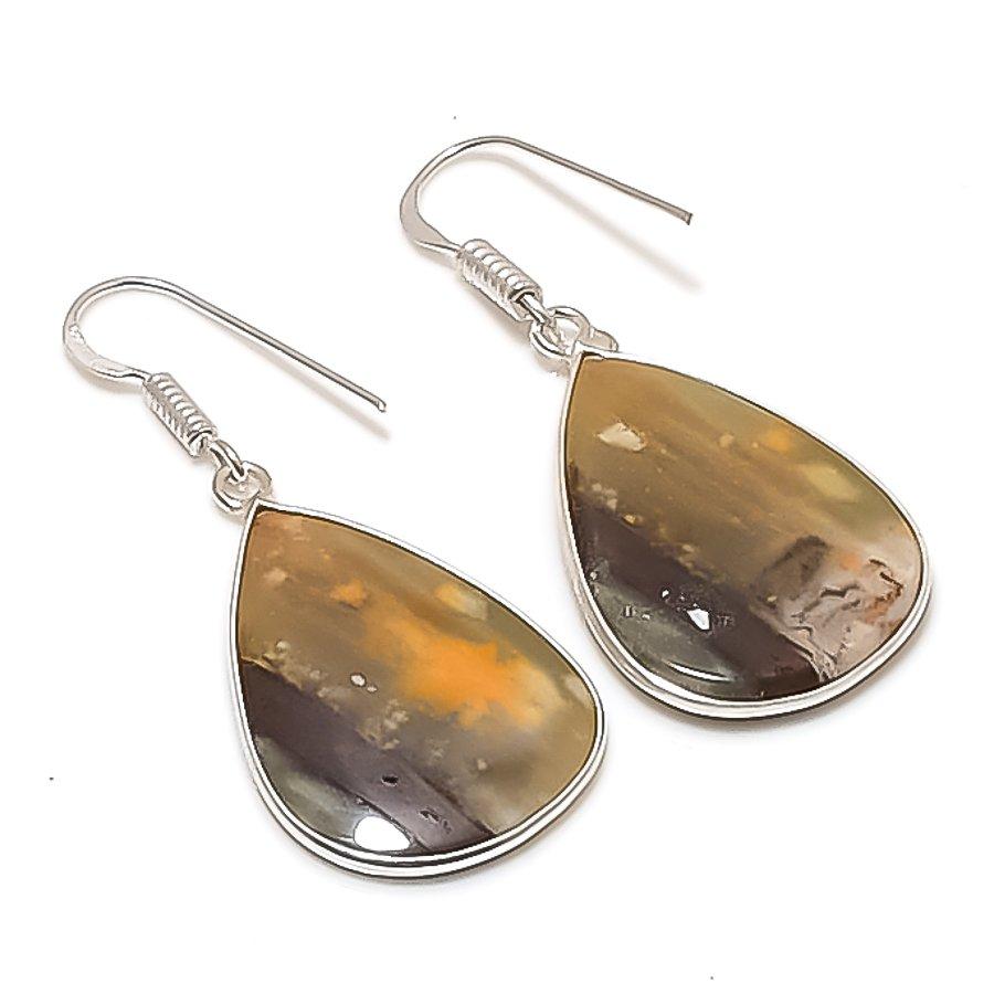 Natural Picasso Jasper Gemstone Handmade 925 Sterling Silver Earring 1.77" AE-11473