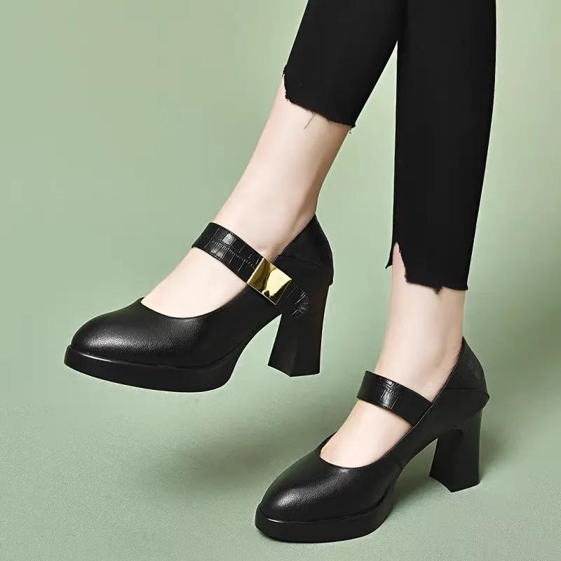 women fashion sweet round toe comfort spring autumn square heel shoes lady classic student school heel shoes ab336