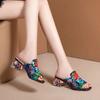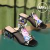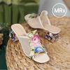 sandalias femininas women fashion peep toe high quality slip on square heel sandal shoes lady cute floral shoes ab542