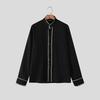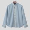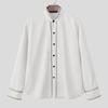 INCERUN Men Stand Neck Stitching Buttons Up Casual Long Sleeve Shirts