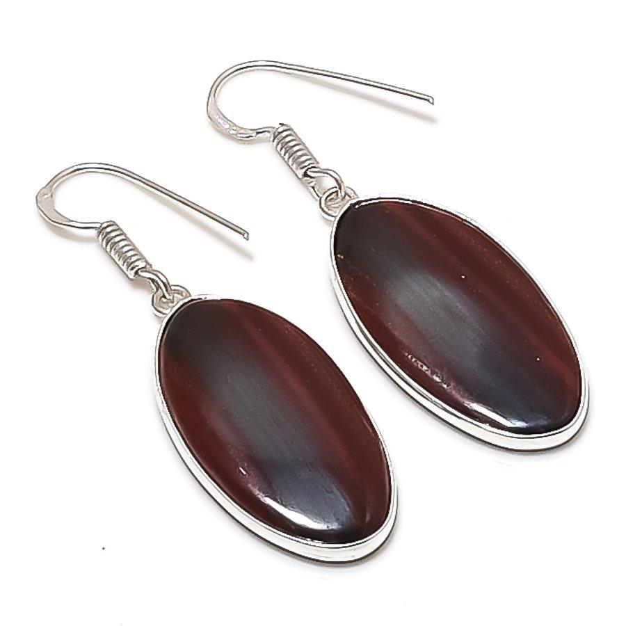 Natural Iron Tiger Eye Gemstone Handmade 925 Sterling Silver Earring 1.77" AE-11633