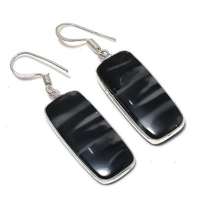 Natural Black Tiger Eye Gemstone Handmade 925 Sterling Silver Earring 1.38" AE-11471