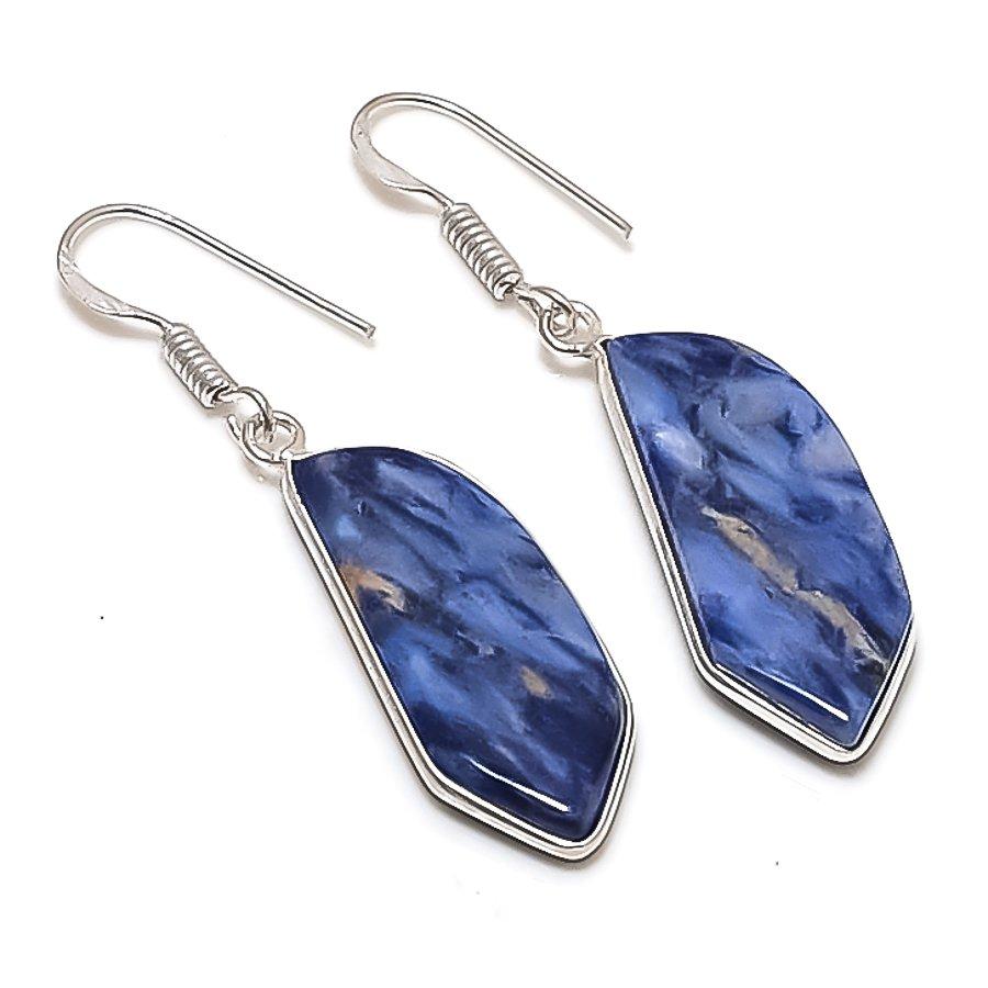 Natural Sodalite Gemstone Handmade 925 Sterling Silver Earring 1.89" AE-11584
