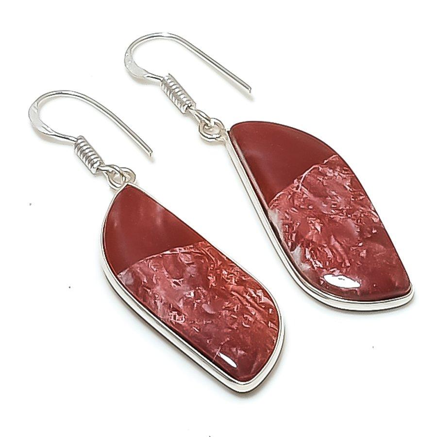 Natural Red Snakeskin Gemstone Handmade 925 Sterling Silver Earring 2.01" AE-11572