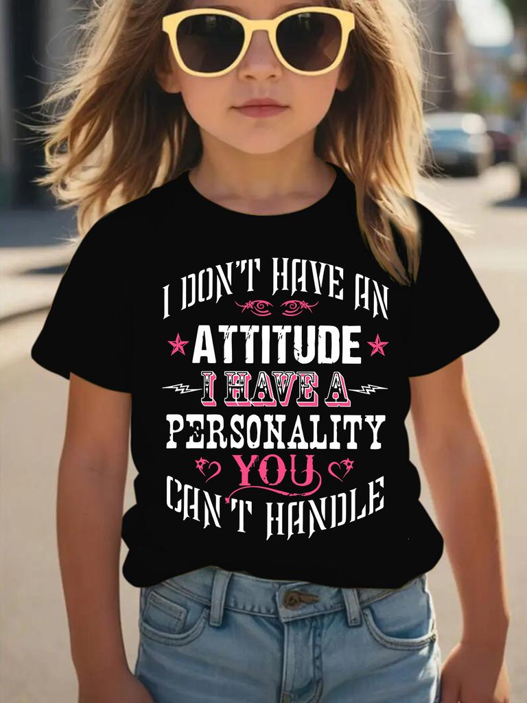 European sizes Summer Fashion Girls Short Sleeve T-Shirt with I DONT HAVE AN ATTITUDE Letter Print Casual Versatile