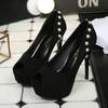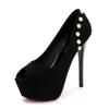 Black Suede Peep Toe High Heel Pumps Platform Shoes with Pearl Decoration Elegant Party Dress Shoes Size 34-40 Zapatos De Mujer