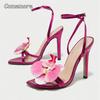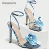 Women's Floral Heels Cross Ankle Strap Square Toe Stiletto Heeled Sandals Ladies Party Dress Shoes Zapatos De Mujer Blue Size 35