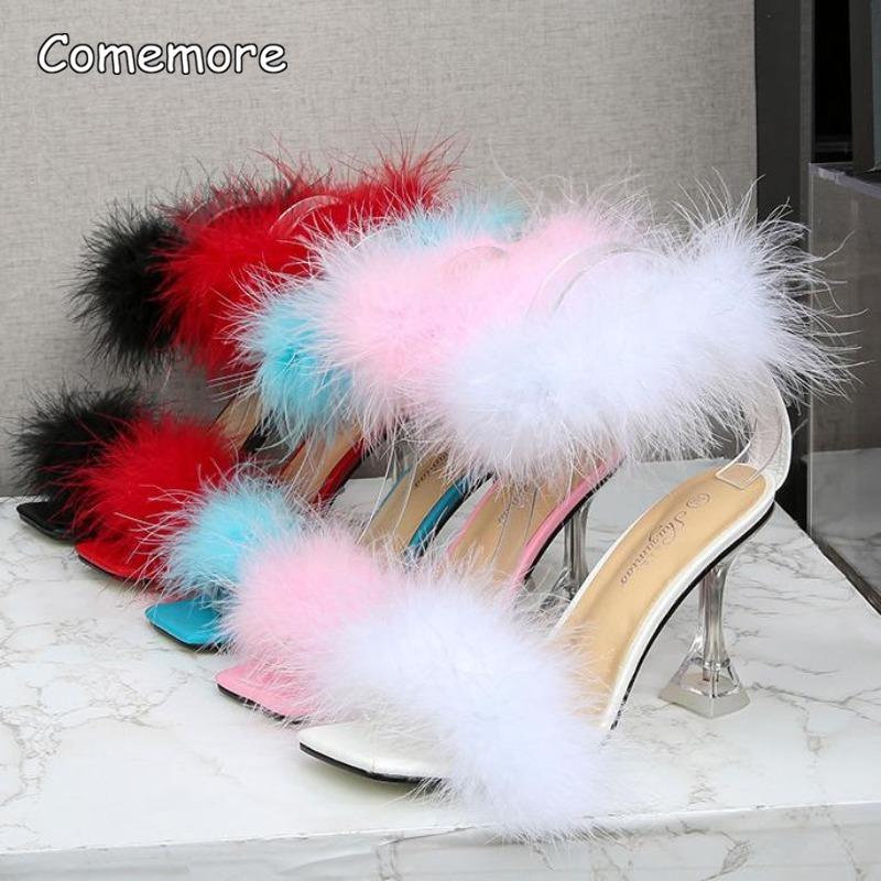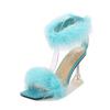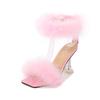 Women's Fashion Fur Sandals Crystal High Heels Ladies Summer Peep Toe Sexy Pumps Fluffy Ankle Straps Tacones Zapatos De Mujer