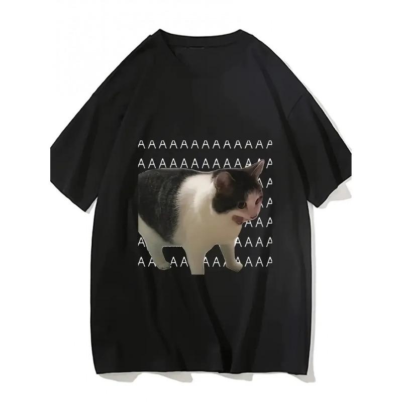 European sizes Funny Fashion Meme Sad Crying Cat Print Casual Comfort T-Shirt, Breathable Polyester, 2D Heat Transfer Print