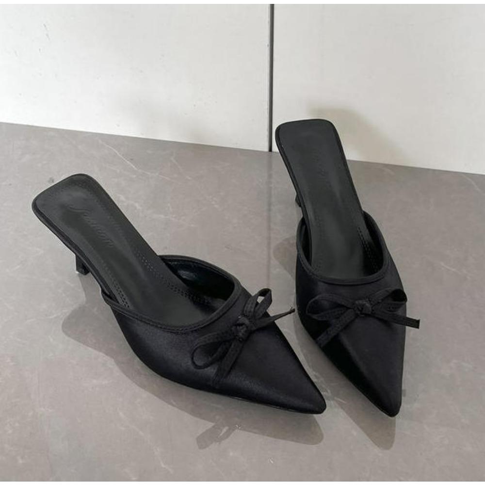 New Butterfly-knot Women Slipper 2026 Summer Pointed Toe Slip on Ladies Mules Thin Low Heel Satin Slide Sandals Zapatos Mujer