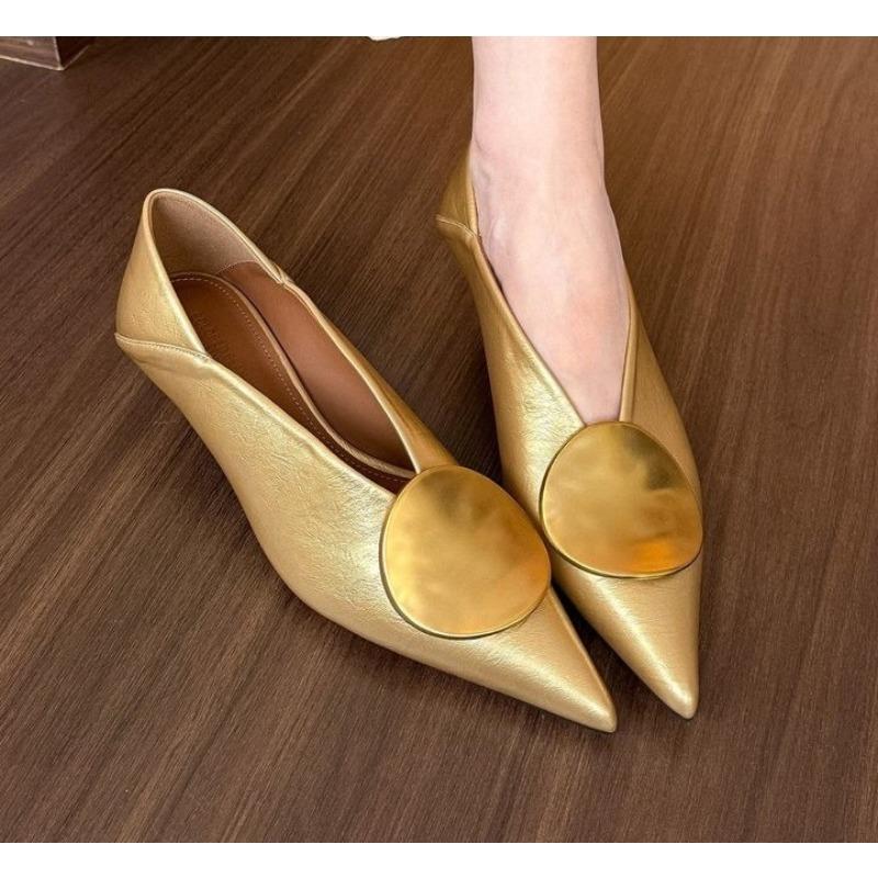 2026 Autumn New Brand Women Pumps Shoes Fashion Gold Metal Shallow Slip on Single Shoes Thin Low Heel Dress Pumps