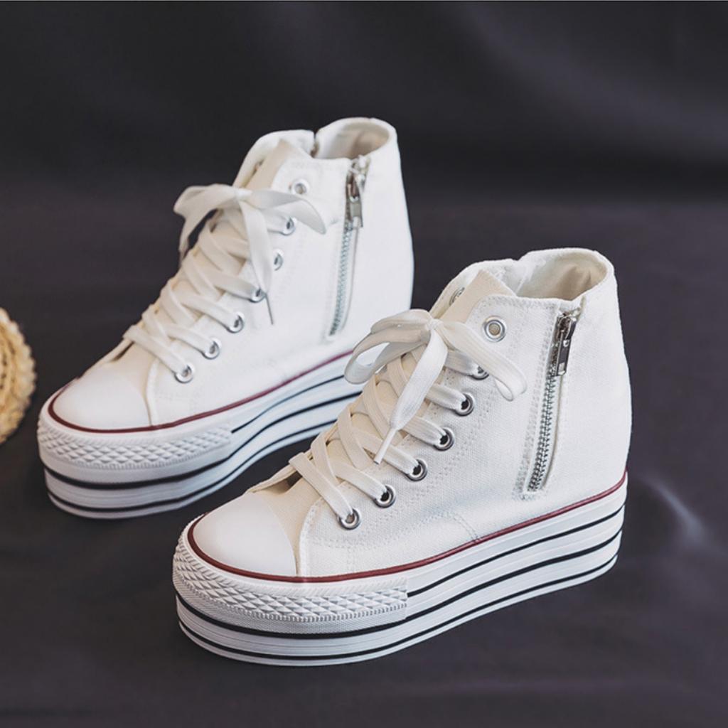 Internal Increase 10CM Canvas Shoes For Women Autumn New Zipper Casual Skateboard Shoes Korean All-match Platform Sneaker