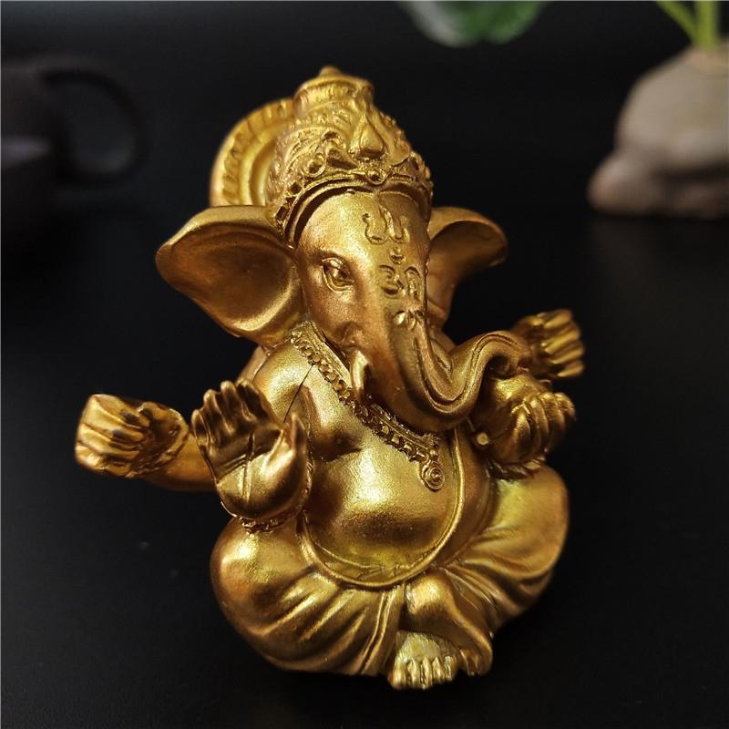 Gold Lord Ganesha Buddha Statue Elephant God Sculptures Ganesh Figurines Man-made Stone Home Garden Buddha Decoration Statues