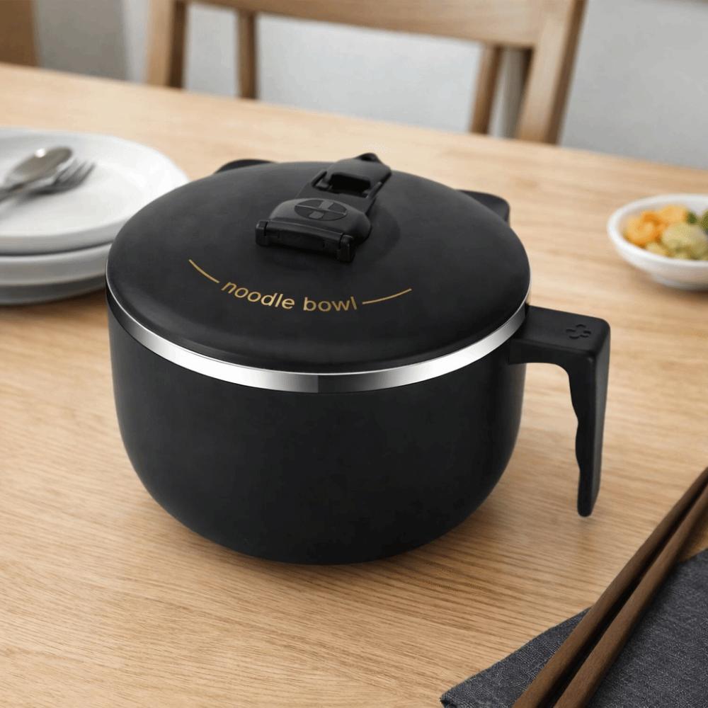 Japanese-style Student Instant Noodle Bowl 304 Stainless Steel 1300 ML Ramen Bowl Handle with Lid Food Serving Bowl School
