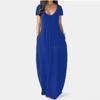 European and American summer, new, large-size women's solid-color dress, sexy deep V short-sleeved long dress.