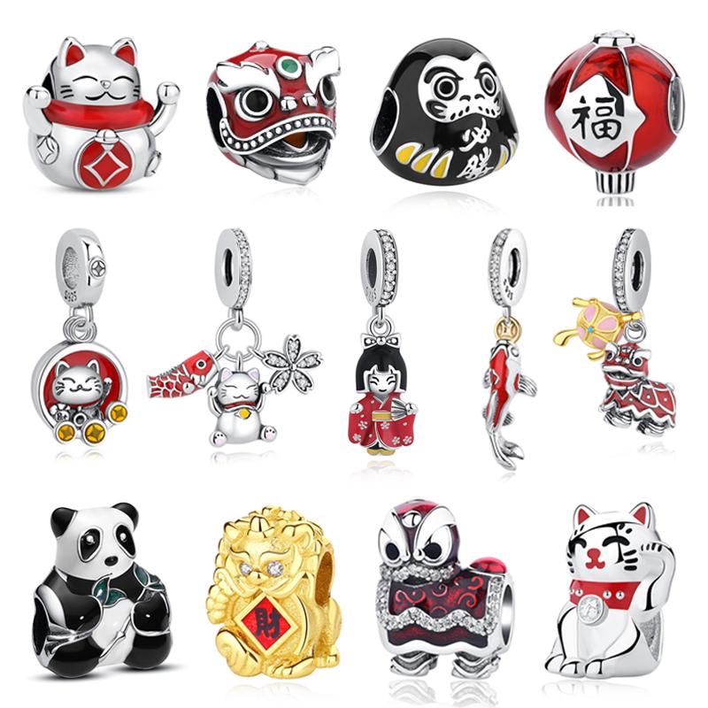 925 Silver Charms Beads Original Japanese Doll Fortune Cat Charm Fit Bracelets Bangles DIY Jewelry For Women