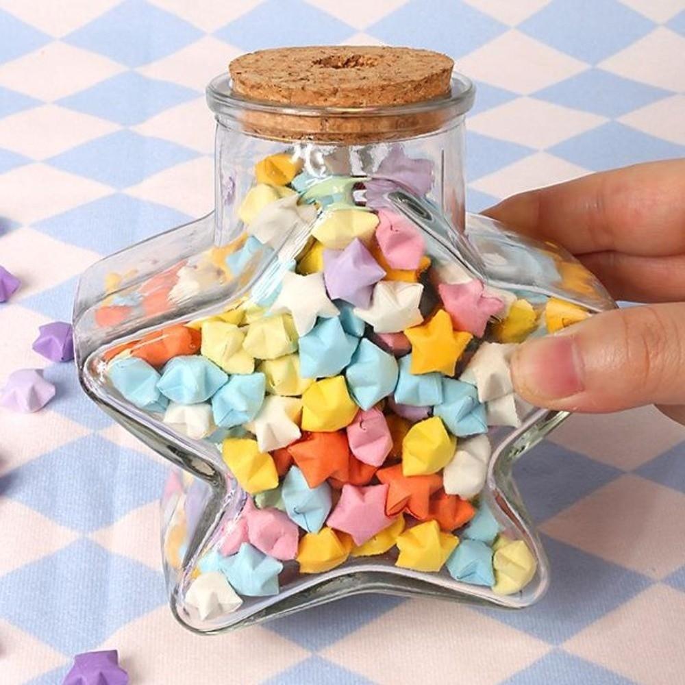 DIY DIY Stars Wishing Bottle Glass Bottle with Shiny String Lights Lucky Star Paper Folding Strips Decorative Rainbow Color