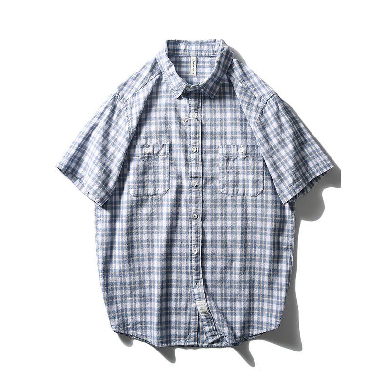 Japanese Retro Pure Cotton Plaid Short-Sleeve Shirt for Men, Summer 2024 New Style, Export Men's Clothing Shirt