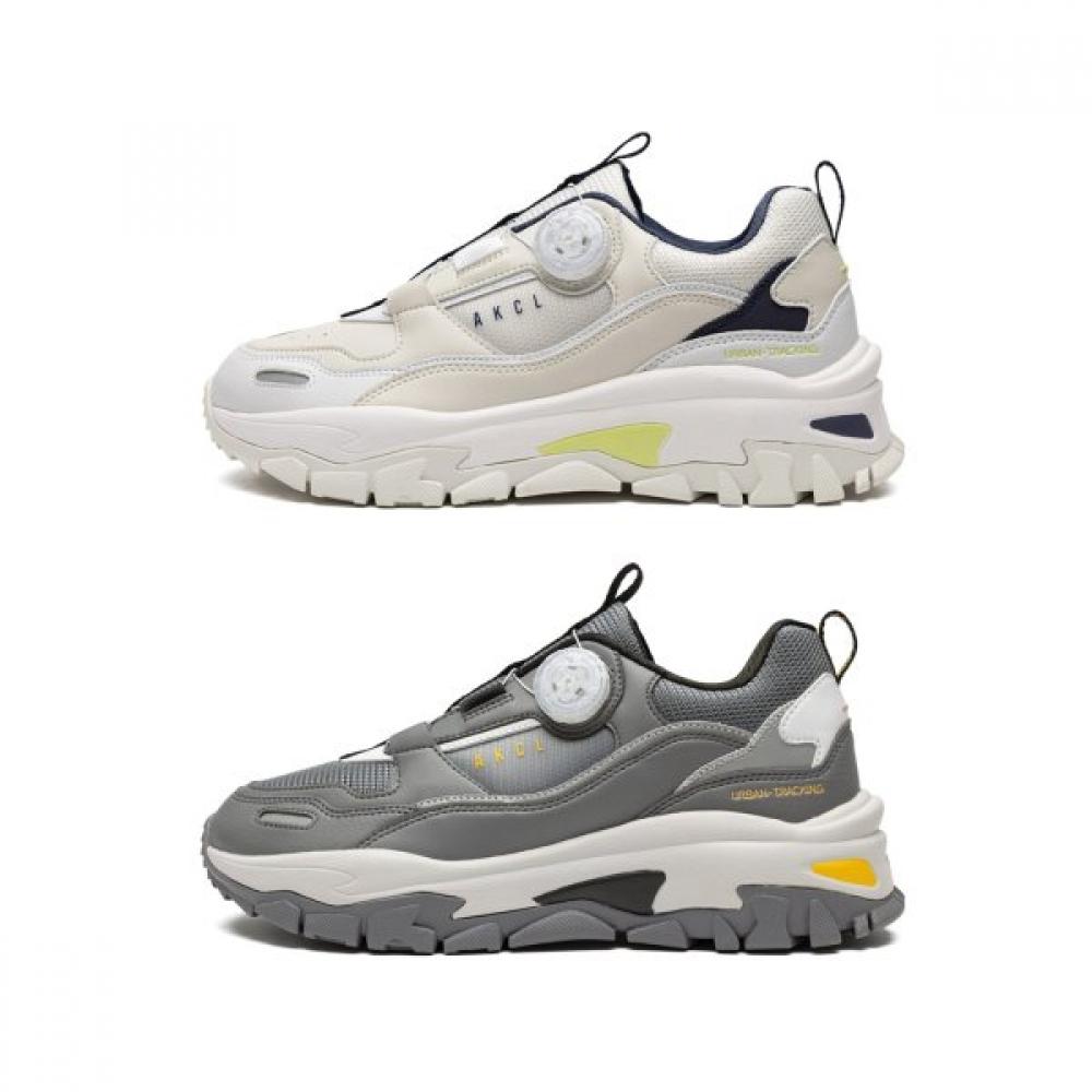 The Aki Classic Dial unisex sports shoes Urban Tracker (AKAMFUW06161) are designed for easy adjustment with a dial mechanism. They feature a chunky design that is trendy, with a moderately raised outsole for a natural wearing experience. Suitable not only for daily life but also for various sports activities such as running and walking.