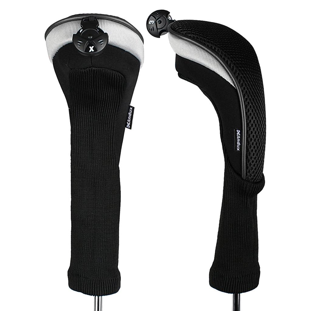 Andux Long Neck Golf Hybrid Club Headcovers with Interchangeable Numbered Set of Tags, 2, CTMT-02 (Black)