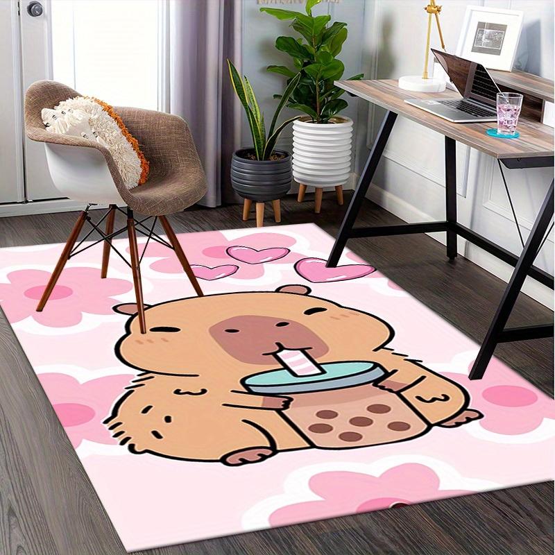 Cute, Capybara, Hearts Office Carpet Soft Polyester Entrance Carpet Washable Non slip Machine Washab