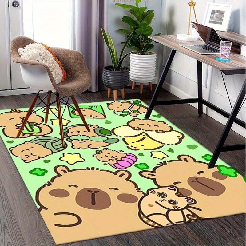 1pc Capybara,Cartoon Characters,Playful Scene Office Carpet Soft Polyester Non slip Machine Washable