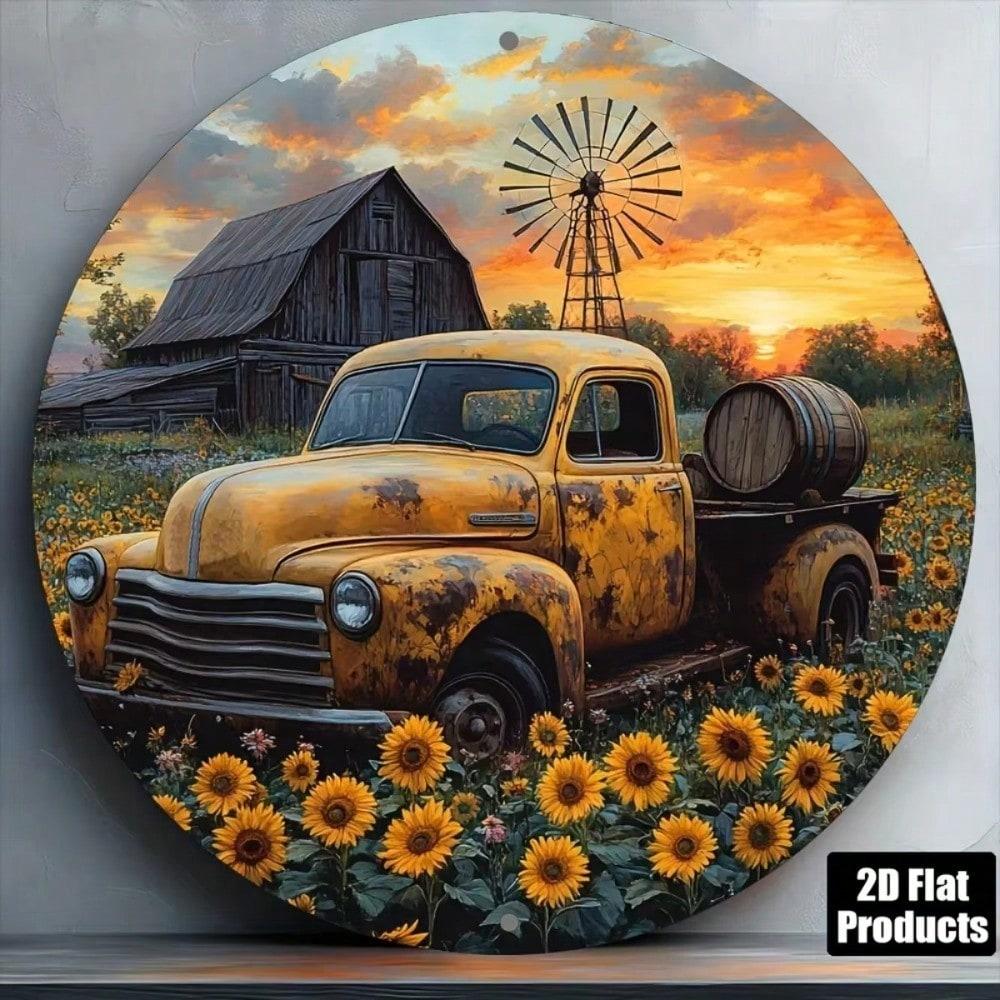 Retro Vintage Sunflower Truck Metal Wall Art Country Kitchen Home Decor Aluminum Sign