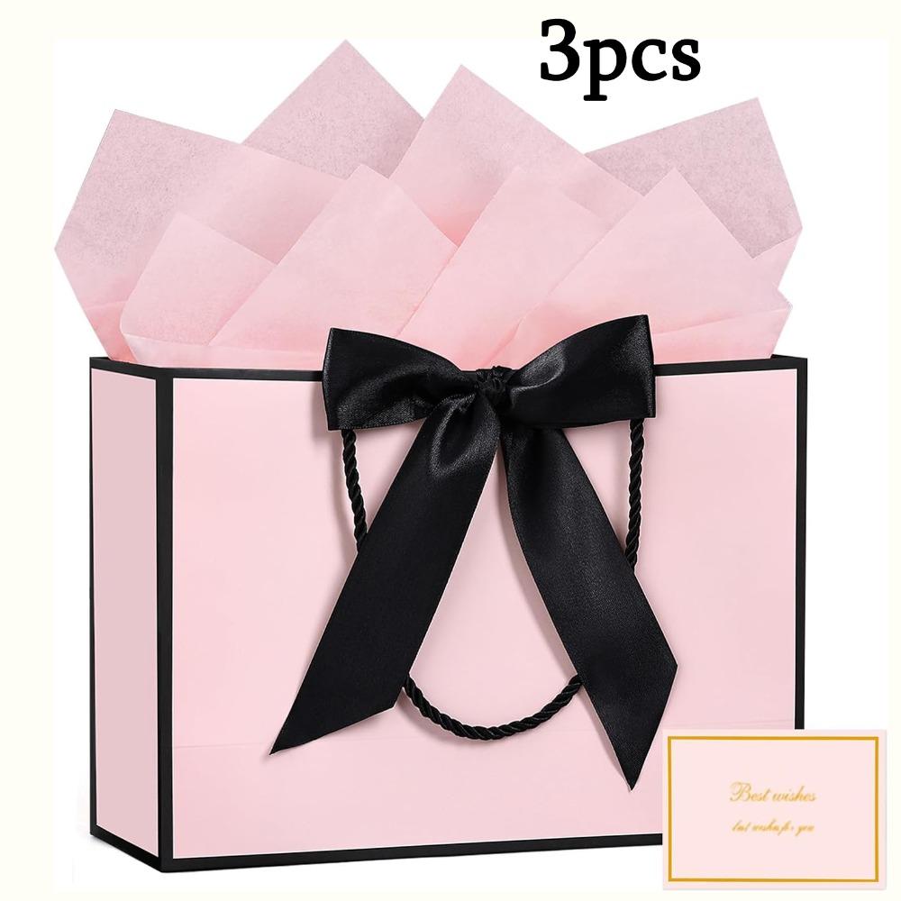 3pcs Gift Bags Large Gift Bags 1Pc Paper Gift Bag with 1 Tissue Paper 1 Greeting Cards and 1 Ribbon Present Bags with Handles Shopping Handheld Bag
