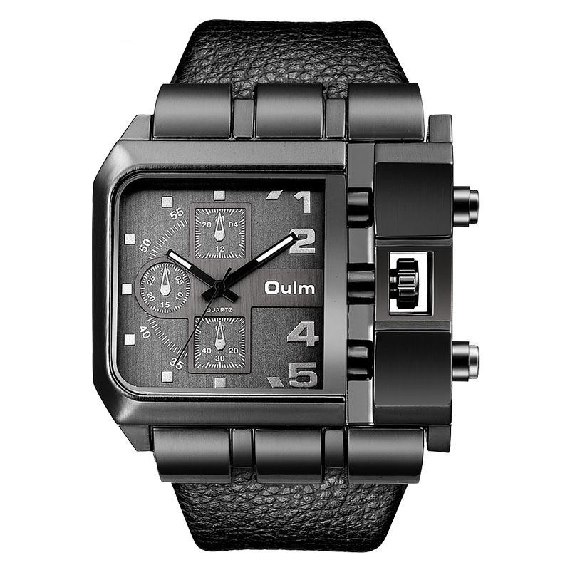 Hip-Hop Men's Square Dial Watch Street Style Leather Strap Quartz Wristwatch