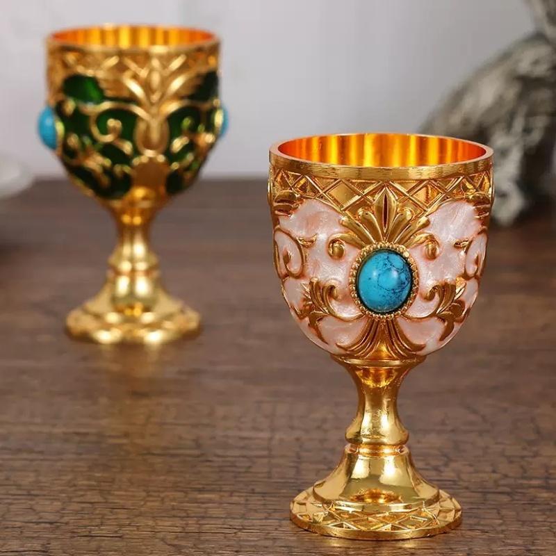 Vintage Shot Glass, Alloy Portable Light Luxury Relief Carved Goblet, European Mini Vodka Tumbler, Home Table Decoration, 1pcs