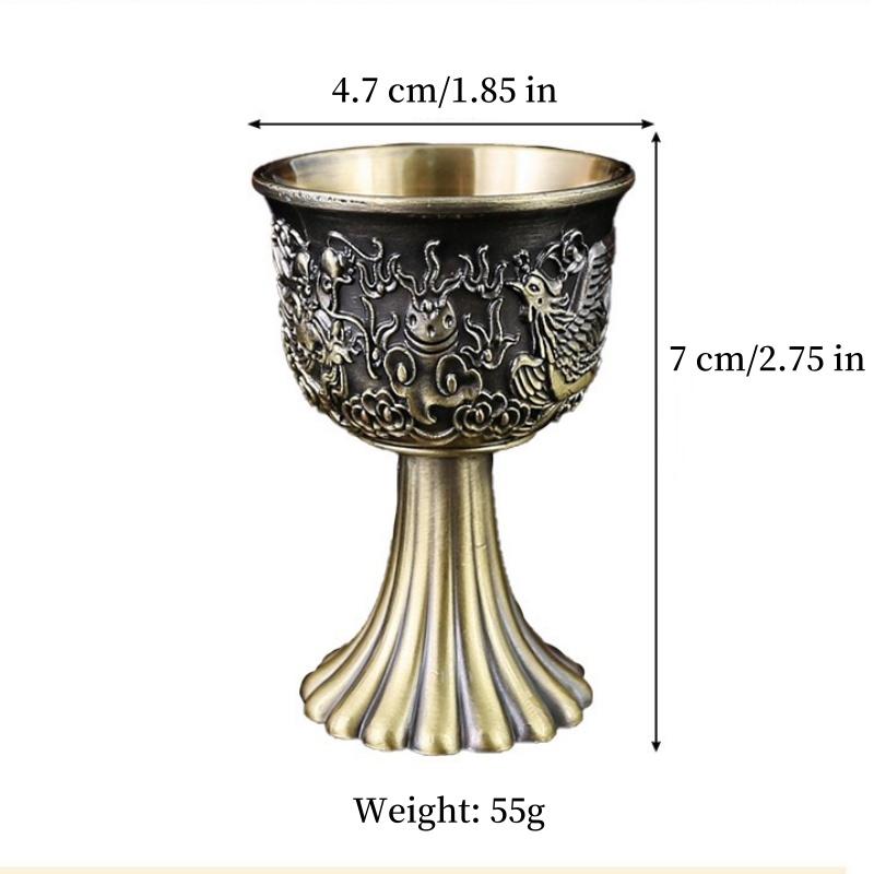 Light Luxury Mini Wine Glass, Alloy Vintage Relief Goblet Cup, European Style Portable Vodka Tumbler, Gift Home Decoration, 1pcs