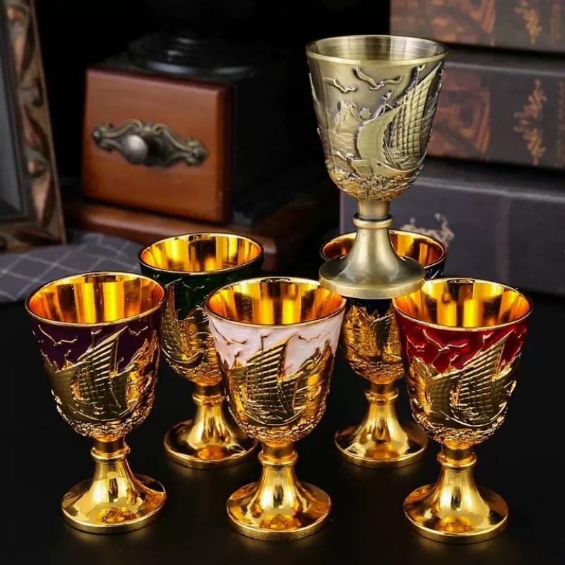 Holy Grail, Alloy Retro Relief Sailing Cup, European Portable Mini Vodka Glass, Creative Home Living Room Decoration Gift, 1pcs