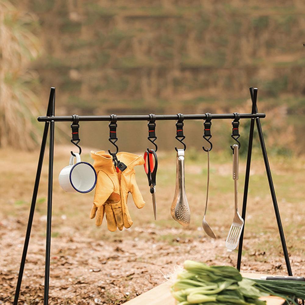 Aluminum Alloy Camping Hanging Rack Multifunctional Portable Triangle Rack with Hooks for Picnic Barbecue for Hiking Backpacking