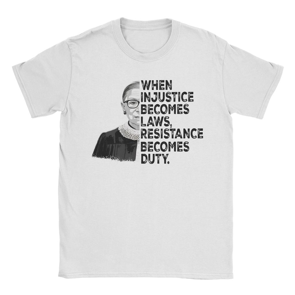 When Injustice Becomes Law Resistance Becomes Duty RBG Quote Tshirts Mens Cotton Tops Funny Round Neck Short Sleeve